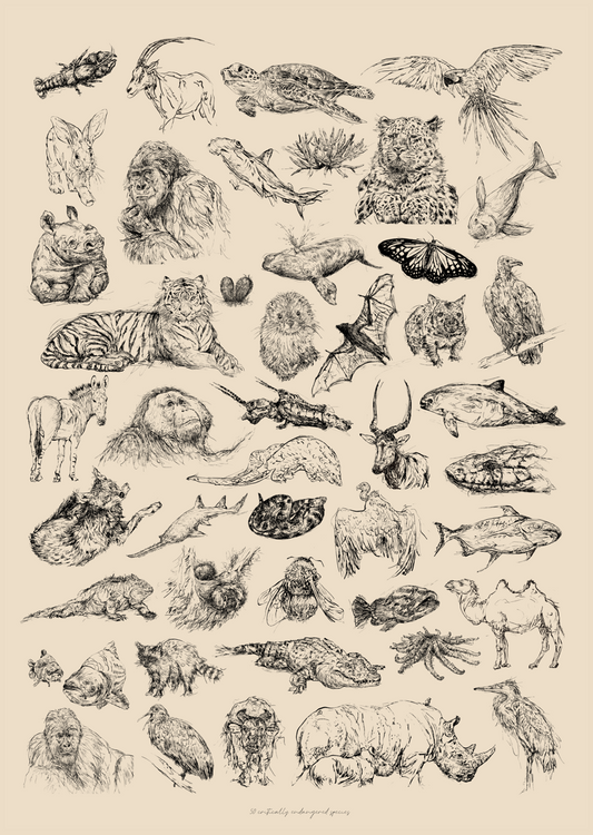 50 Critically Endangered Animals Art print